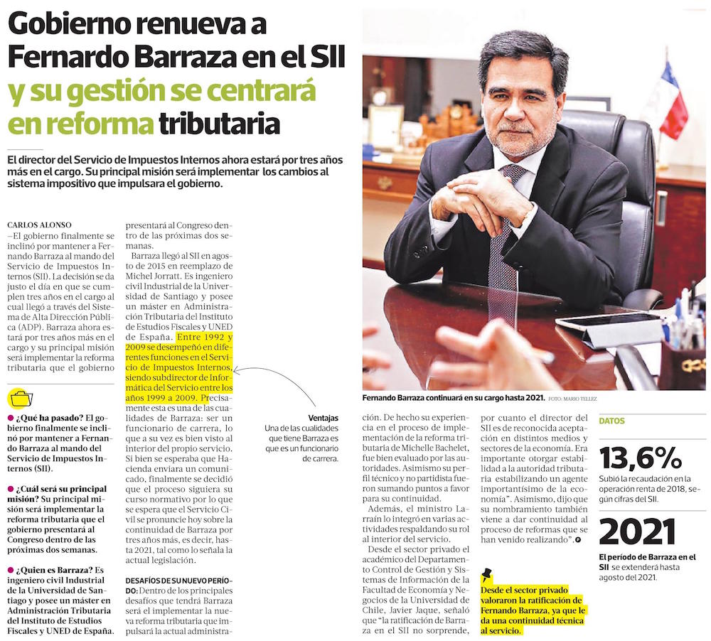 Gobierno evalúa mantener a Fernando Barraza en el SII - (El Mercurio de Santiago)