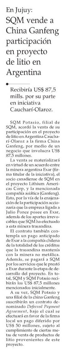 SQM sale del proyecto de litio en Argentina y se enfoca en Chile y Australia - (Pulso)