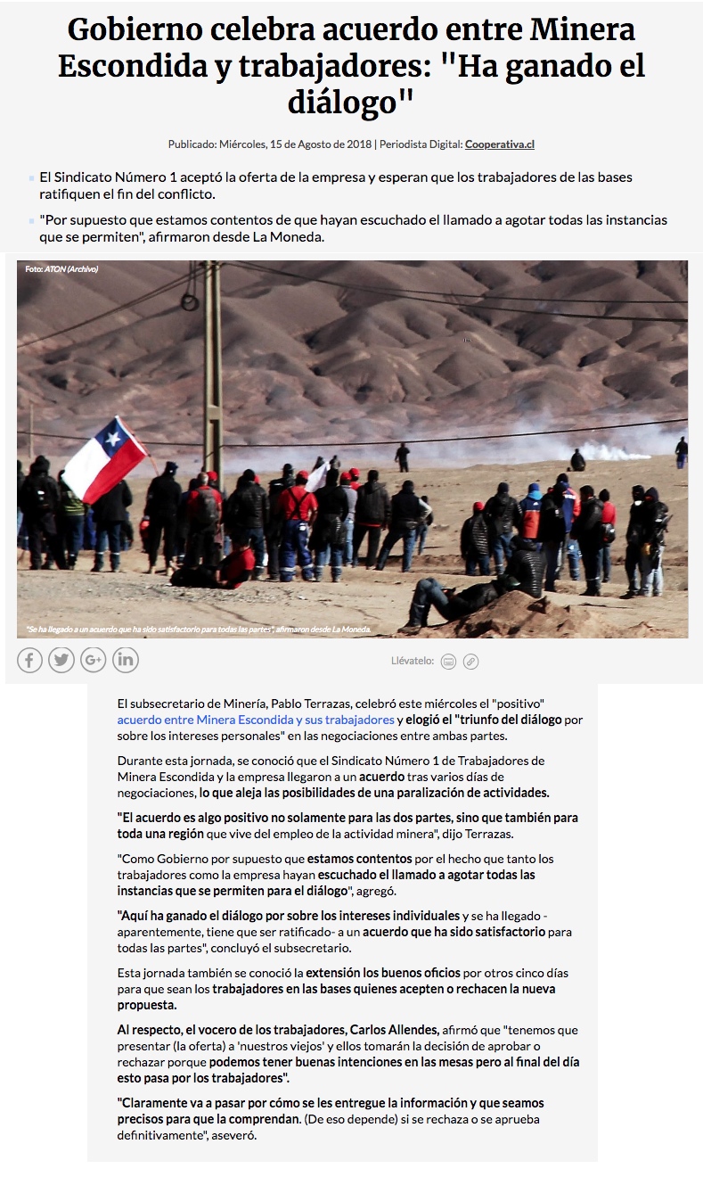 Monckeberg celebra acuerdo que evita huelga en Minera Escondida - (El Mostrador)