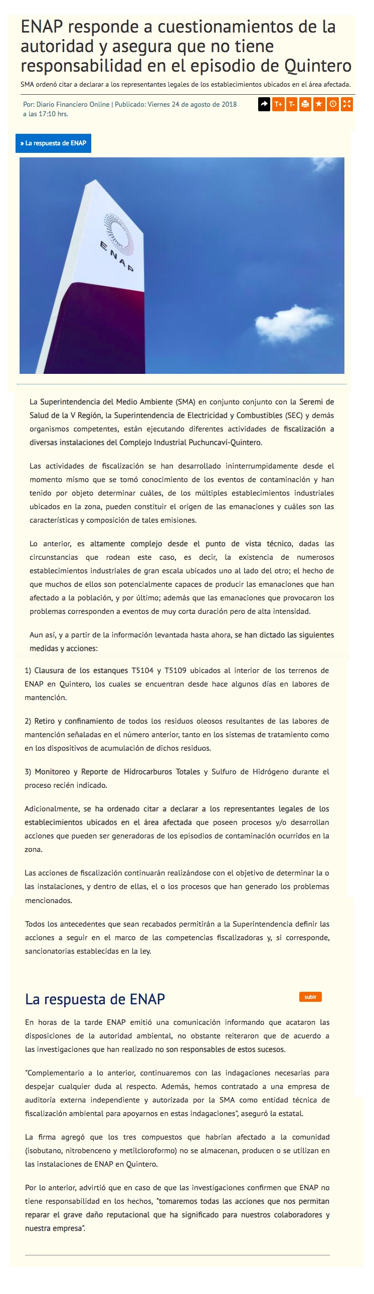 Gobierno chileno ordena el cierre de faenas de petrolera ENAP tras incidente ambiental - (americaeconomia online)