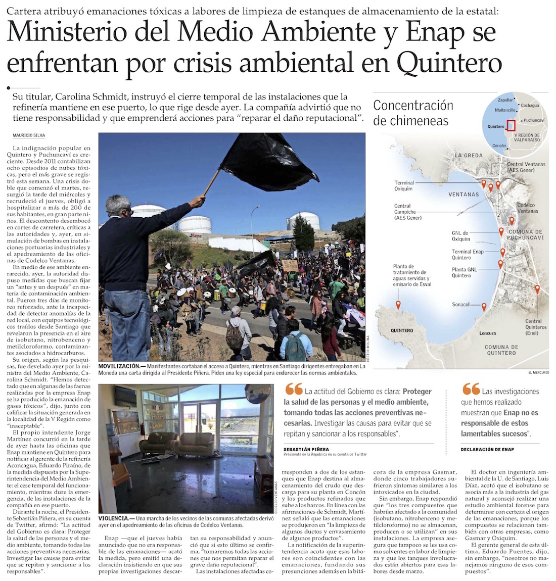 Sueños rotos, impotencia, descontrol: El día de rabia en la bahía Quintero - (El Mercurio de Valparaíso)