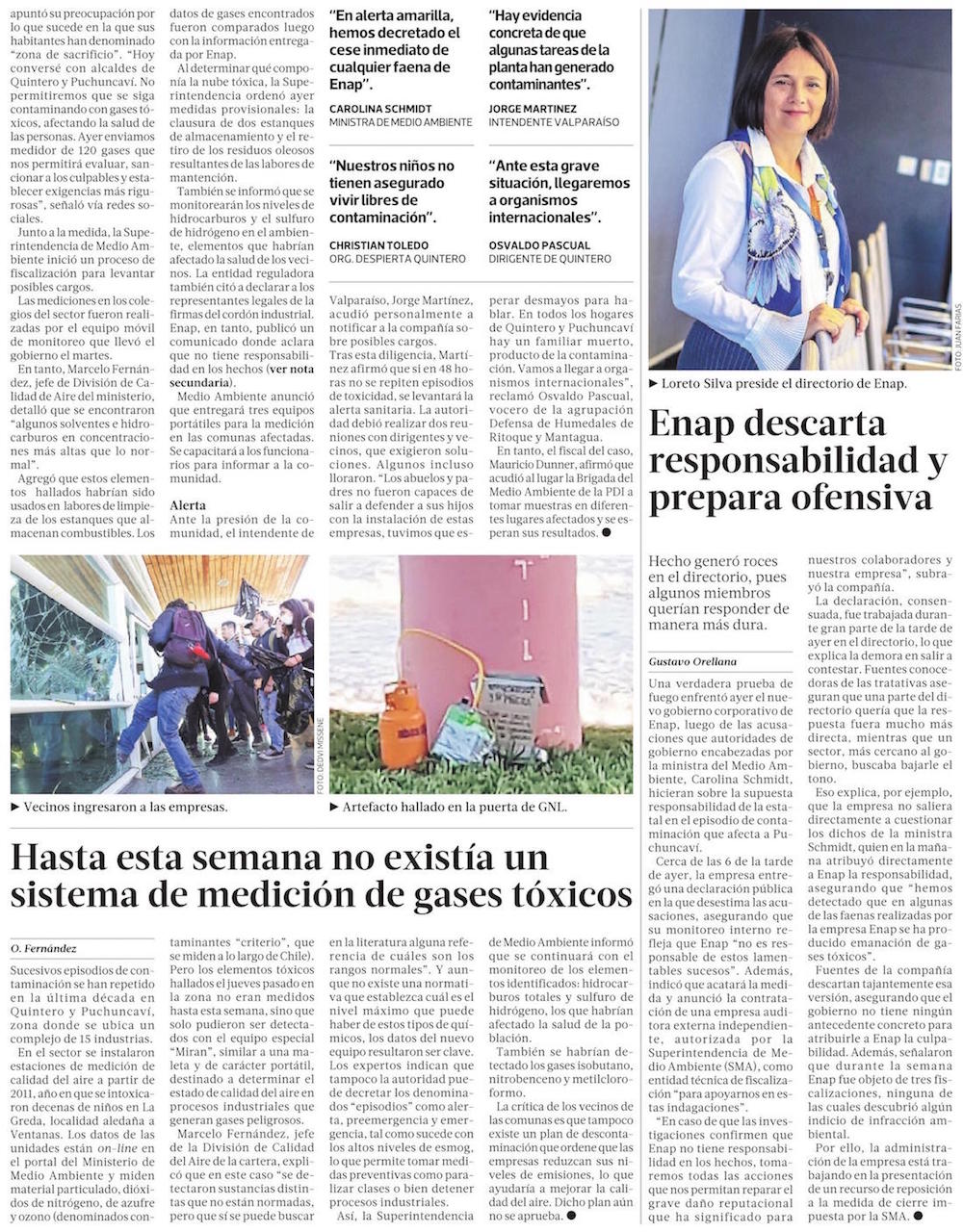 ENAP responde a cuestionamientos de la autoridad y asegura que no tiene responsabilidad en el episodio de Quintero - (DF Online)