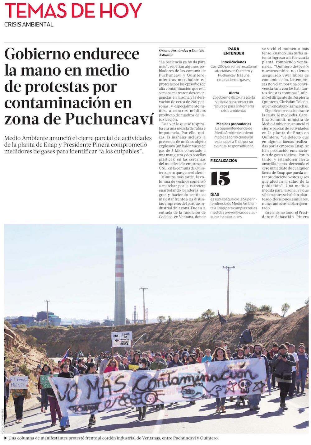 ENAP responde a cuestionamientos de la autoridad y asegura que no tiene responsabilidad en el episodio de Quintero - (DF Online)
