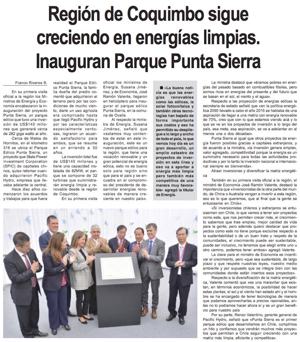 Ovalle: Nuevo parque eólico permitirá entregar energía a 170 mil hogares - (cooperativa online)