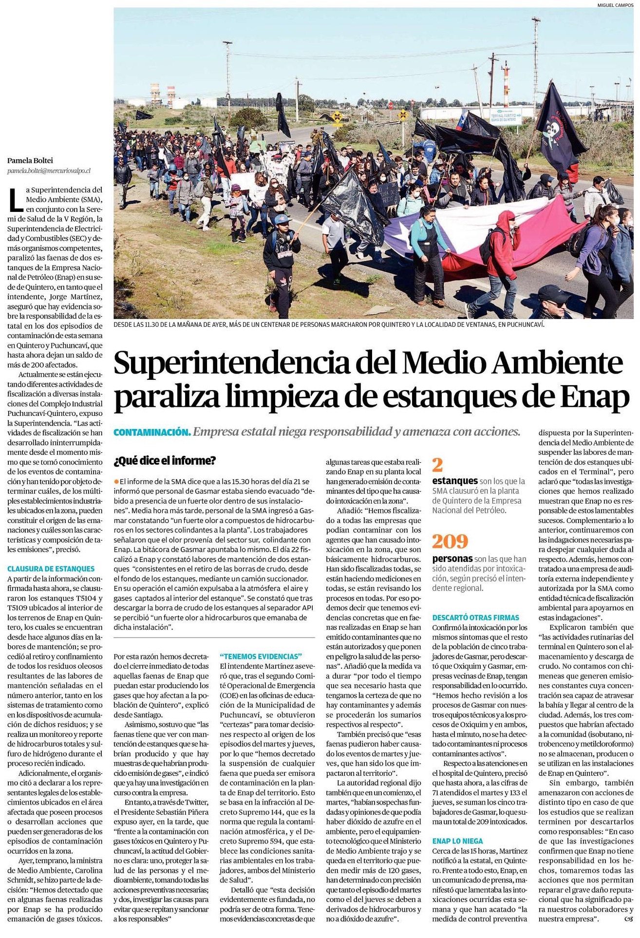 ENAP responde a cuestionamientos de la autoridad y asegura que no tiene responsabilidad en el episodio de Quintero - (DF Online)