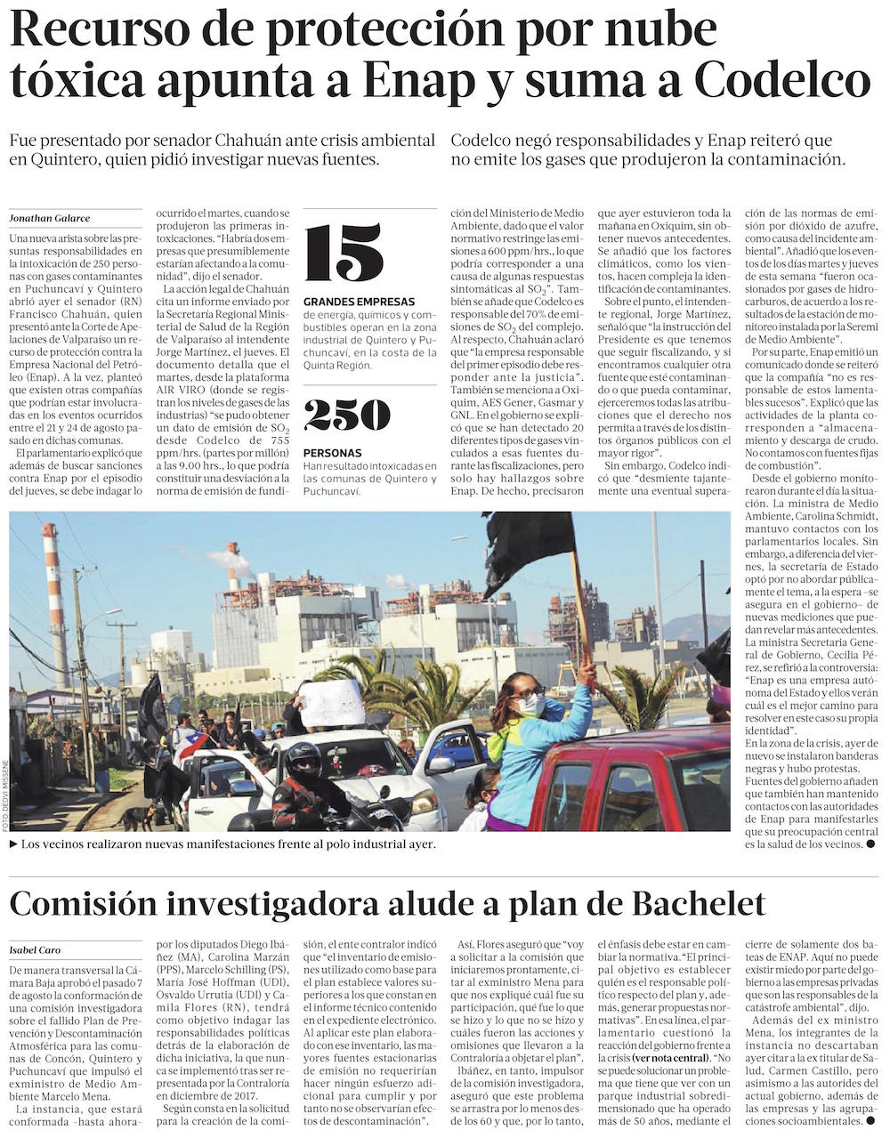 Contaminación: Presentan recurso de protección para fijar responsabilidades - (El Mercurio de Valparaíso)