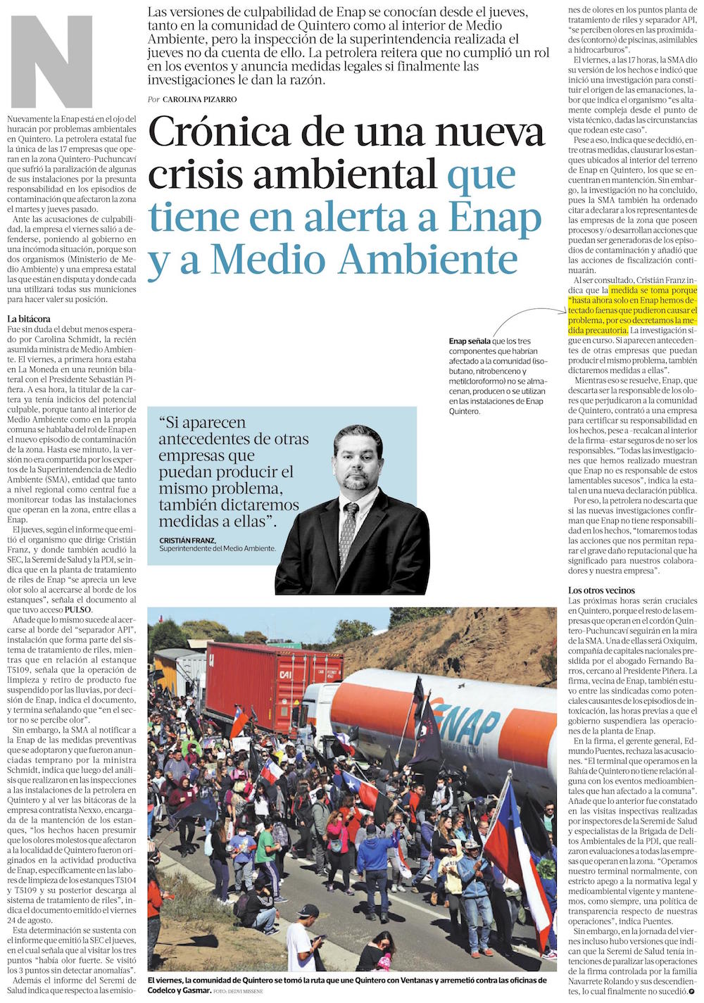 Recursos de protección por nube tóxica apunta a Enap y suma a Codelco - (La Tercera)