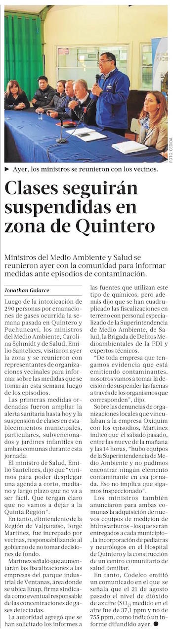 Contaminación: Presentan recurso de protección para fijar responsabilidades - (El Mercurio de Valparaíso)