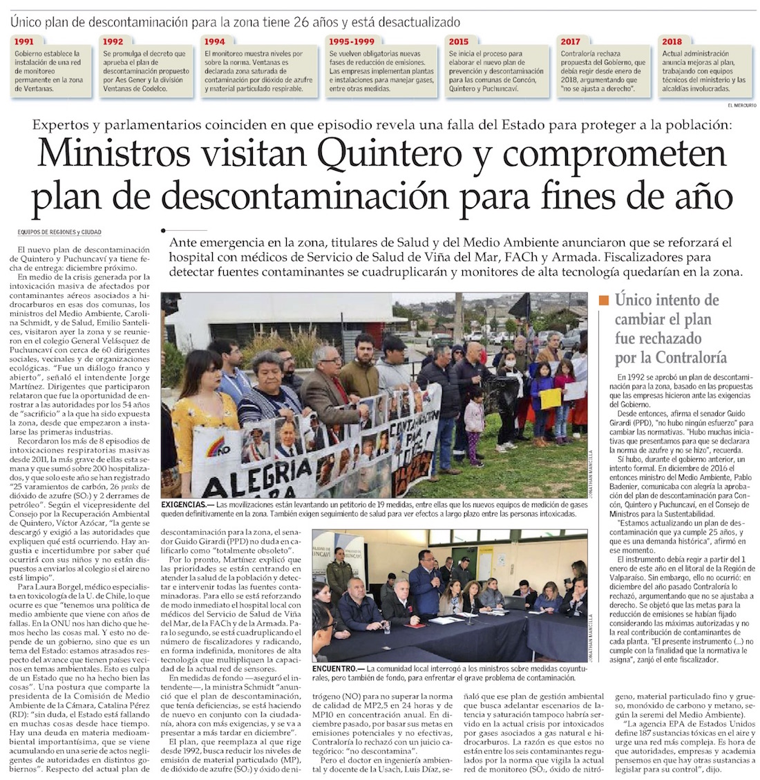 Ministerio del Medio Ambiente y Enap se enfrentan por crisis ambiental en Quintero - (El Mercurio de Santiago)