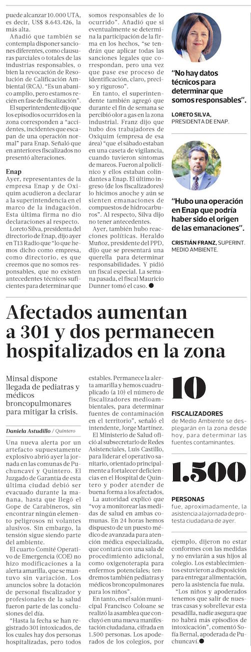 Los descargos de Oxiquim por contaminación en Quintero - (La Segunda)