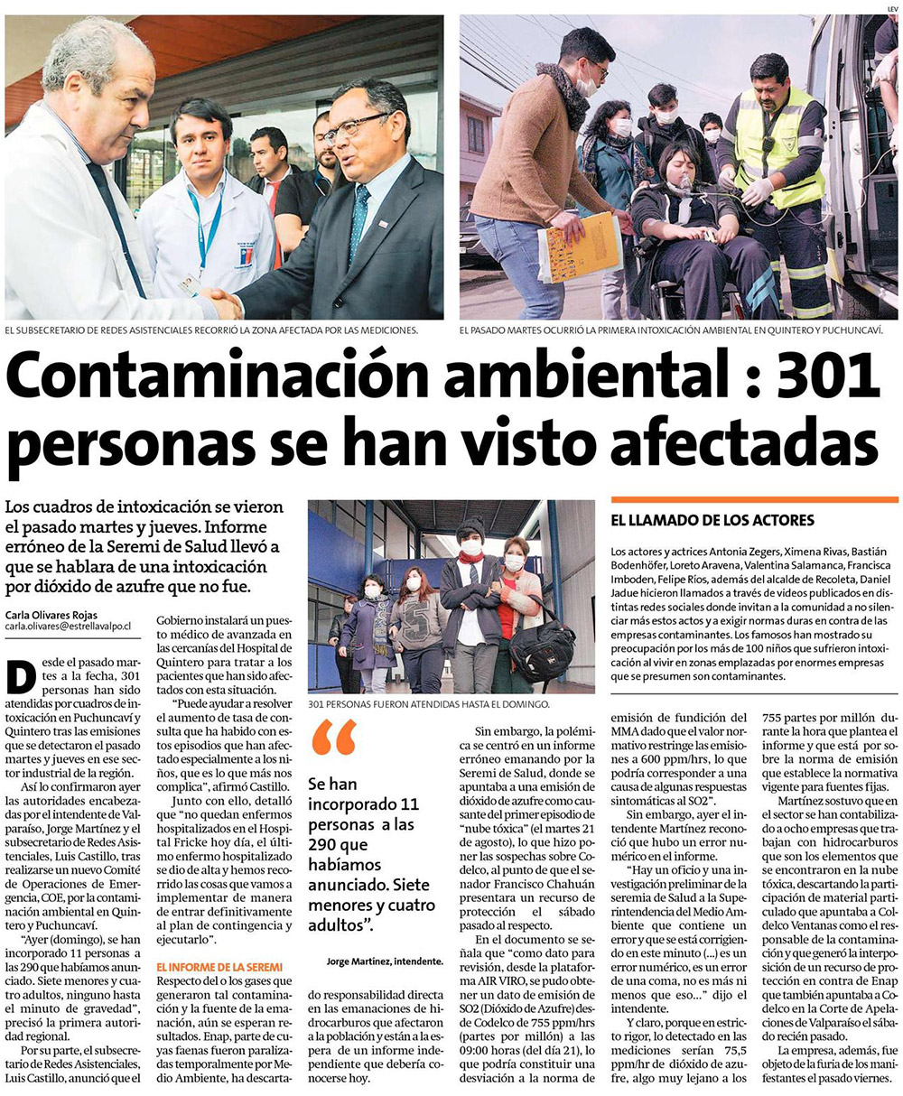 Hospital de Quintero atendió a 11 nuevos intoxicados pese a medidas impuestas a Enap - (El Mercurio de Santiago)