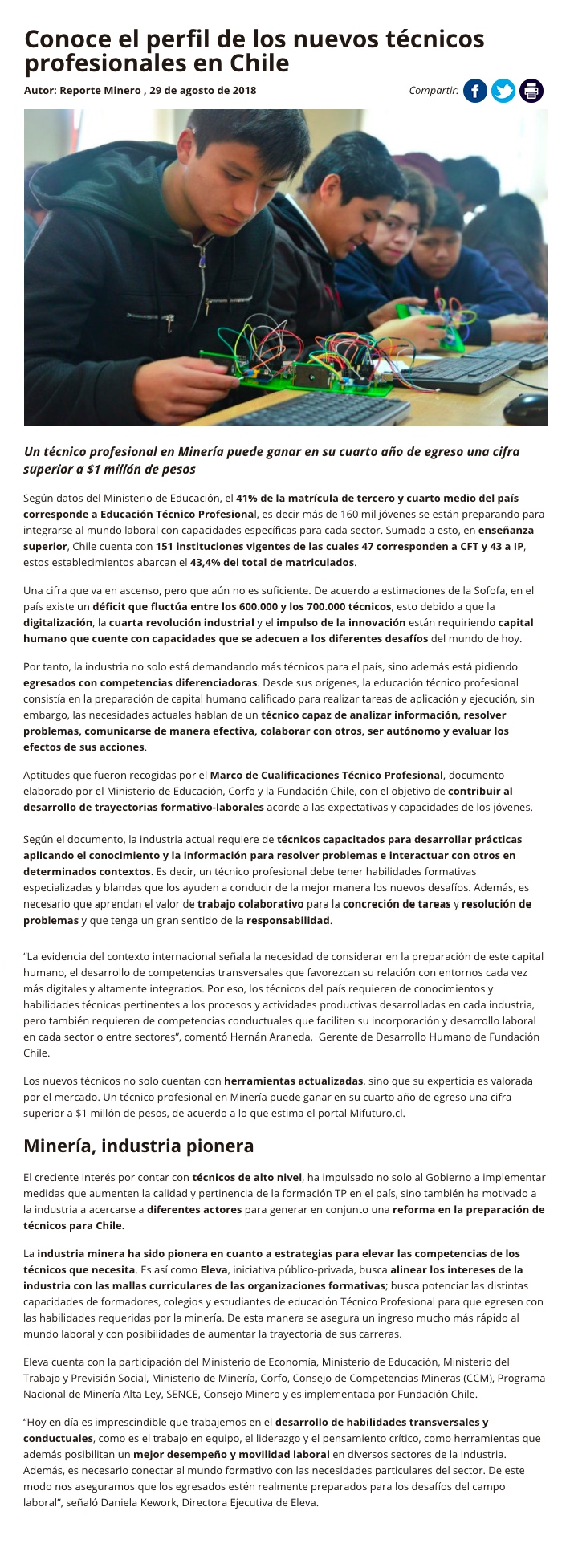 reporteminero - Miércoles, 29 de Agosto de 2018