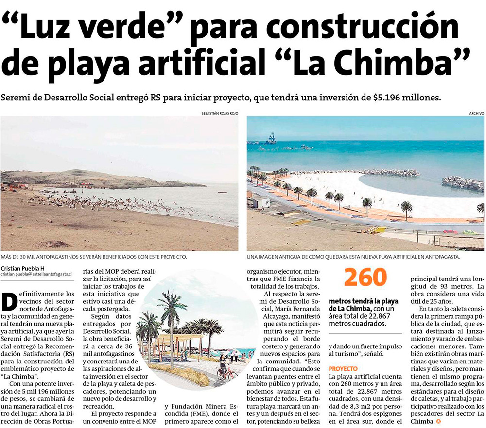 Proyecto de playa artificial La Chimba obtuvo visto bueno para su licitación - (El Mercurio de Antofagasta)