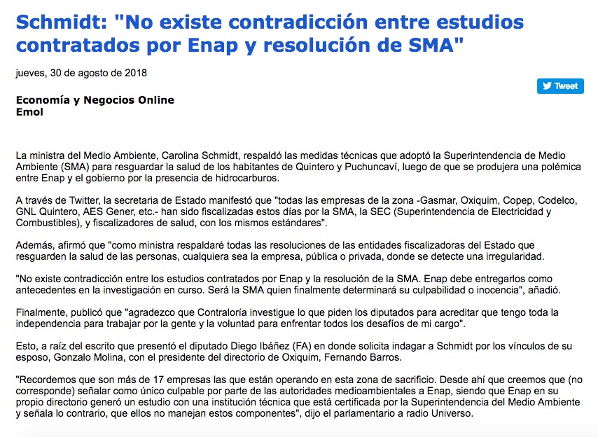 Diputados irán a Contraloría por presunto vínculo e intereses de Schmidt con Oxiquim - (biobiochile online)
