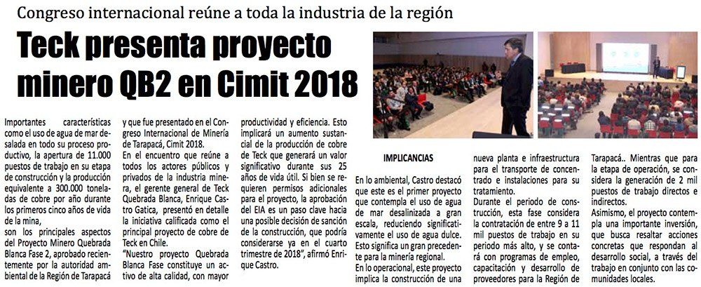 En septiembre partirán las obras previas de Quebrada Blanca Fase 2 - (Estrella de Iquique)