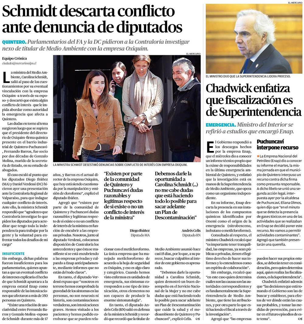 Diputados irán a Contraloría por presunto vínculo e intereses de Schmidt con Oxiquim - (biobiochile online)