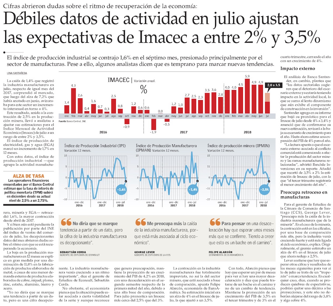 Segundo semestre partió con sorpresiva baja de industria y puso nota de alerta sobre inversión - (Diario Financiero)
