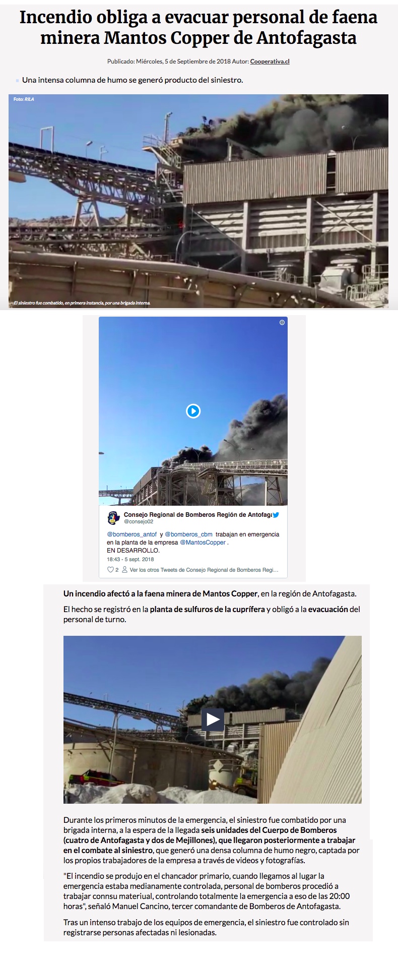 Incendio afectó faena de Mantos Copper - (El Mercurio de Antofagasta)