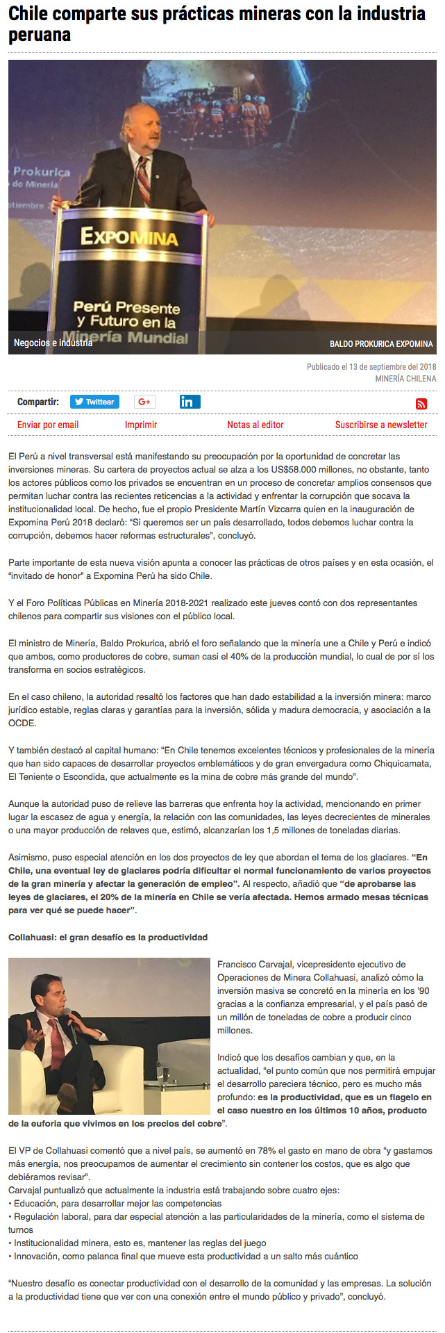 Prokurica: Chile y Perú deben aliarse para aprovechar las ventajas de la creciente demanda por litio - (Pulso Online)
