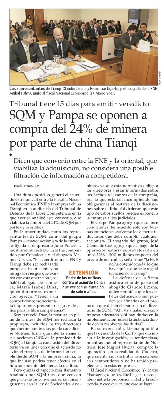 Duras acusaciones entre Tianqi y Cascadas marcan audiencia en el TDLC por acuerdo con la FNE - (Pulso)