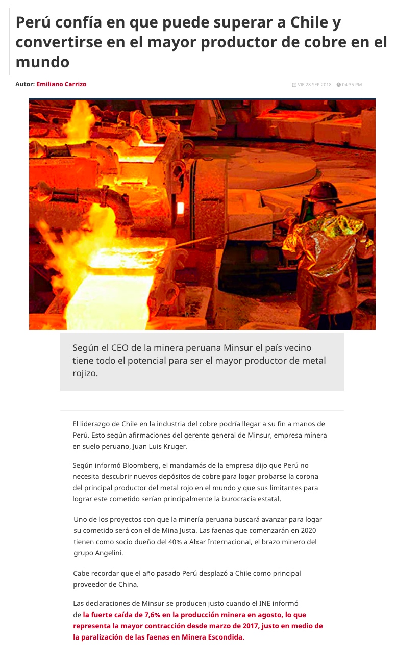 Perú tiene potencial para convertirse en mayor productor de cobre del mundo - (mineriaenlinea)