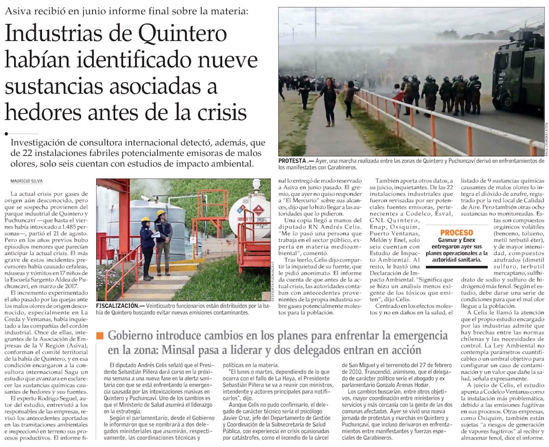 Asiva determinó existencia de 9 gases fugitivos ante casos de intoxicación - (El Mercurio de Valparaíso)