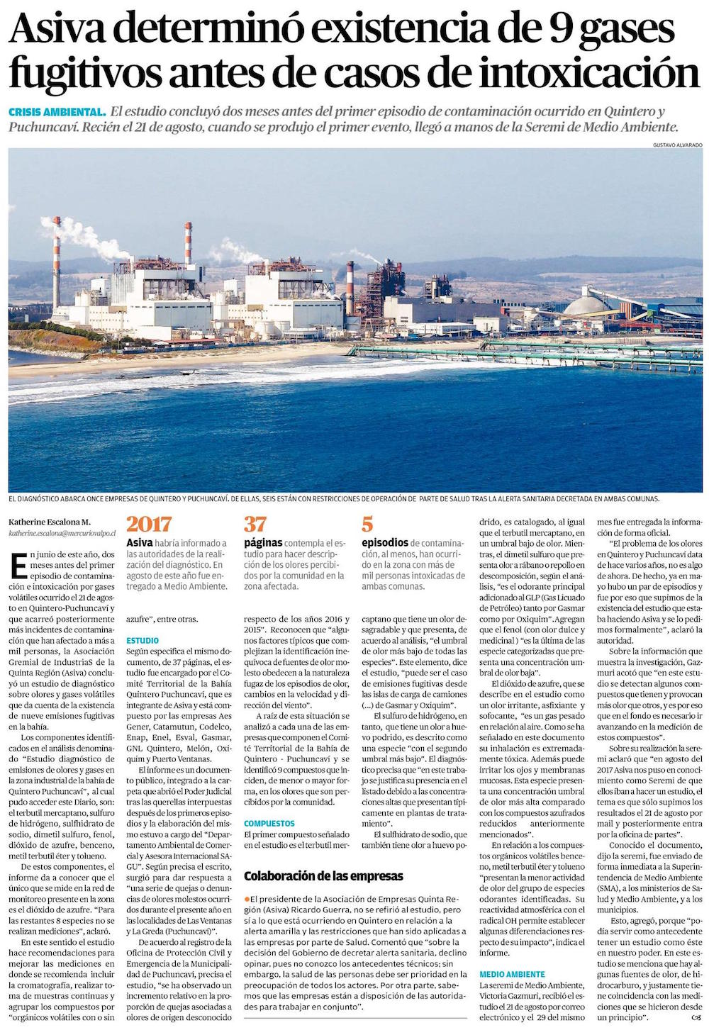 Industrias de Quintero habían identificado nueve sustancias asociadas a hedores antes de la crisis - (El Mercurio de Santiago)