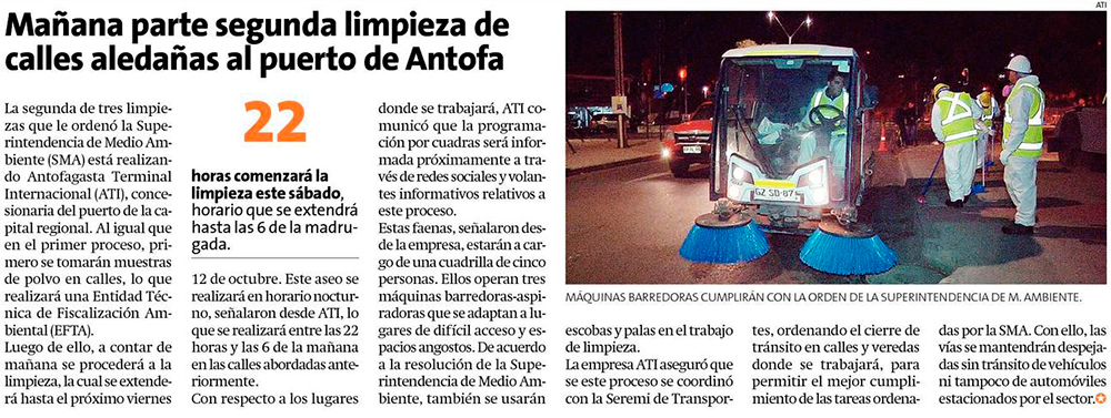ATI comenzó segunda limpieza de calles aledañas al puerto - (El Mercurio de Antofagasta)