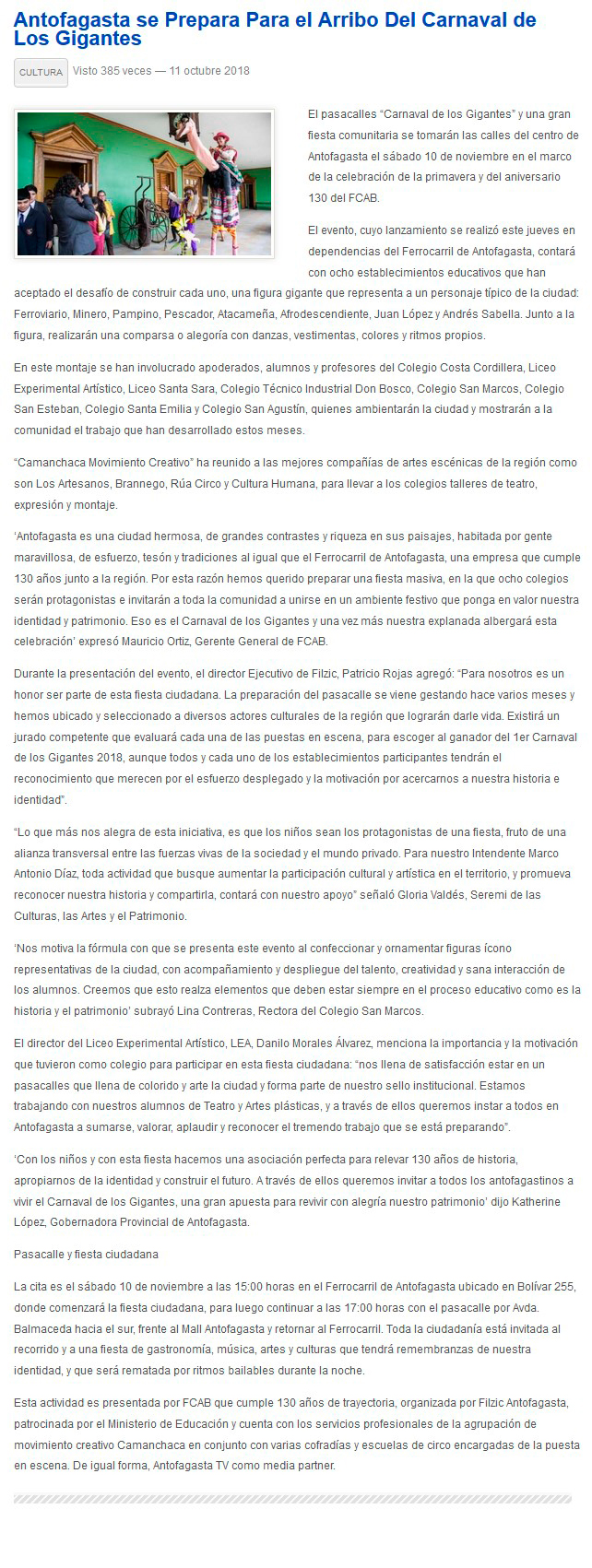 Carnaval de los gigantes 10 de noviembre - (El Mercurio de Antofagasta)