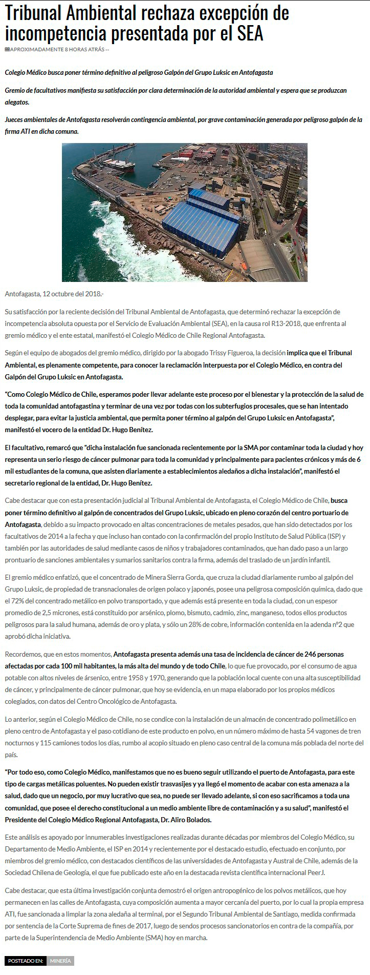 T. Ambiental rechaza excepción de incompetencia solicitada por el SEA - (El Mercurio de Antofagasta)