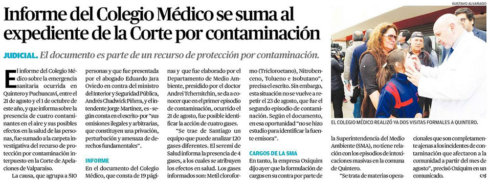 Médicos indican a Corte los riesgos que corren los vecinos de Quintero - (El Mercurio de Santiago)