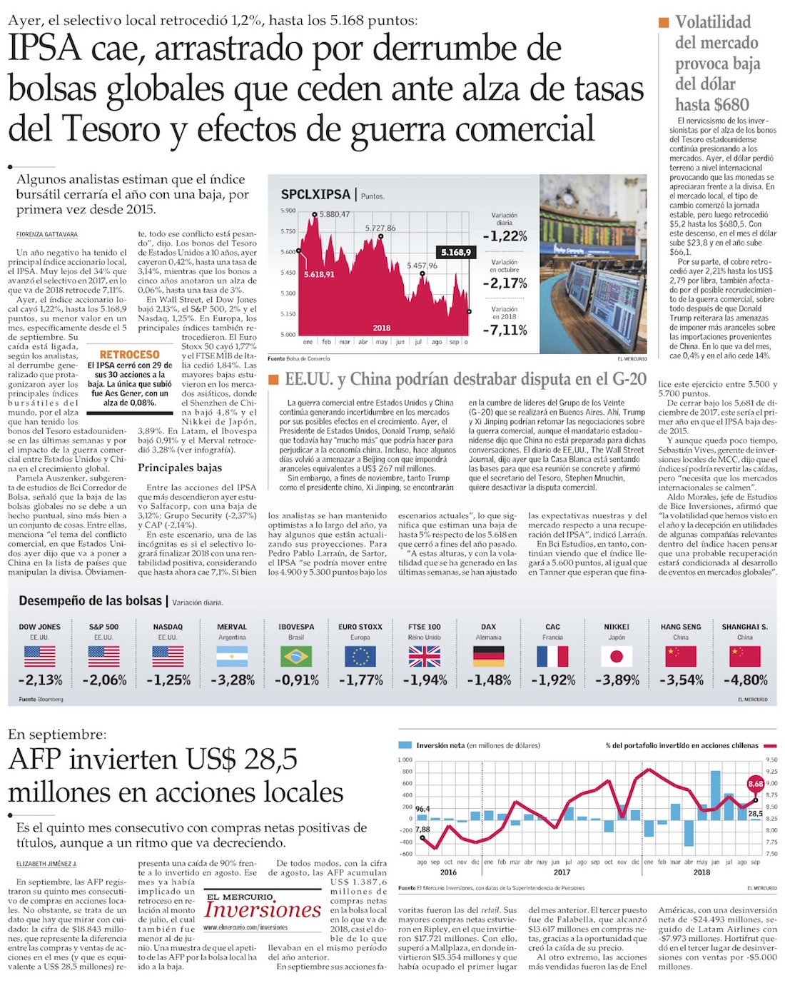Ola de ventas llega a Chile: bajan 29 de 30 acciones del IPSA - (Diario Financiero)