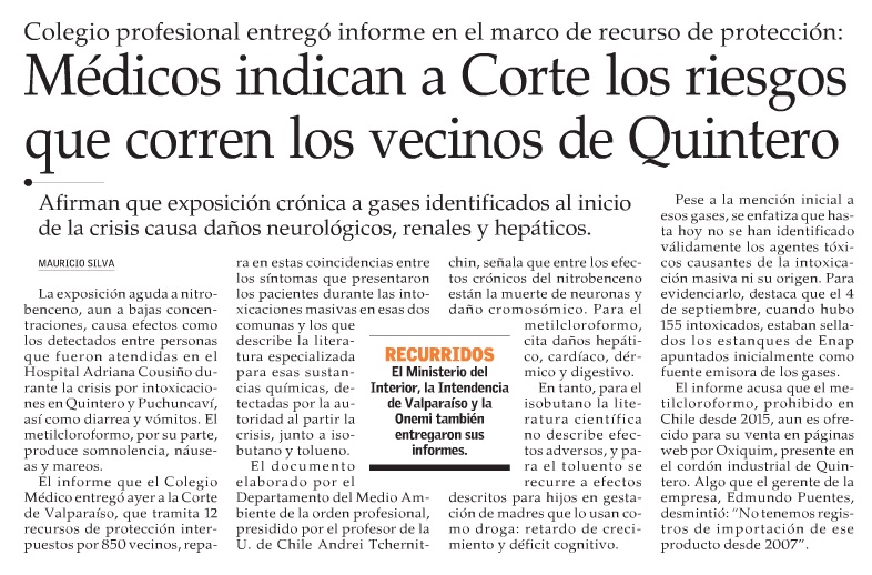 Informe del Colegio Médico se suma al expediente de la Corte por contaminación - (El Mercurio de Valparaíso)
