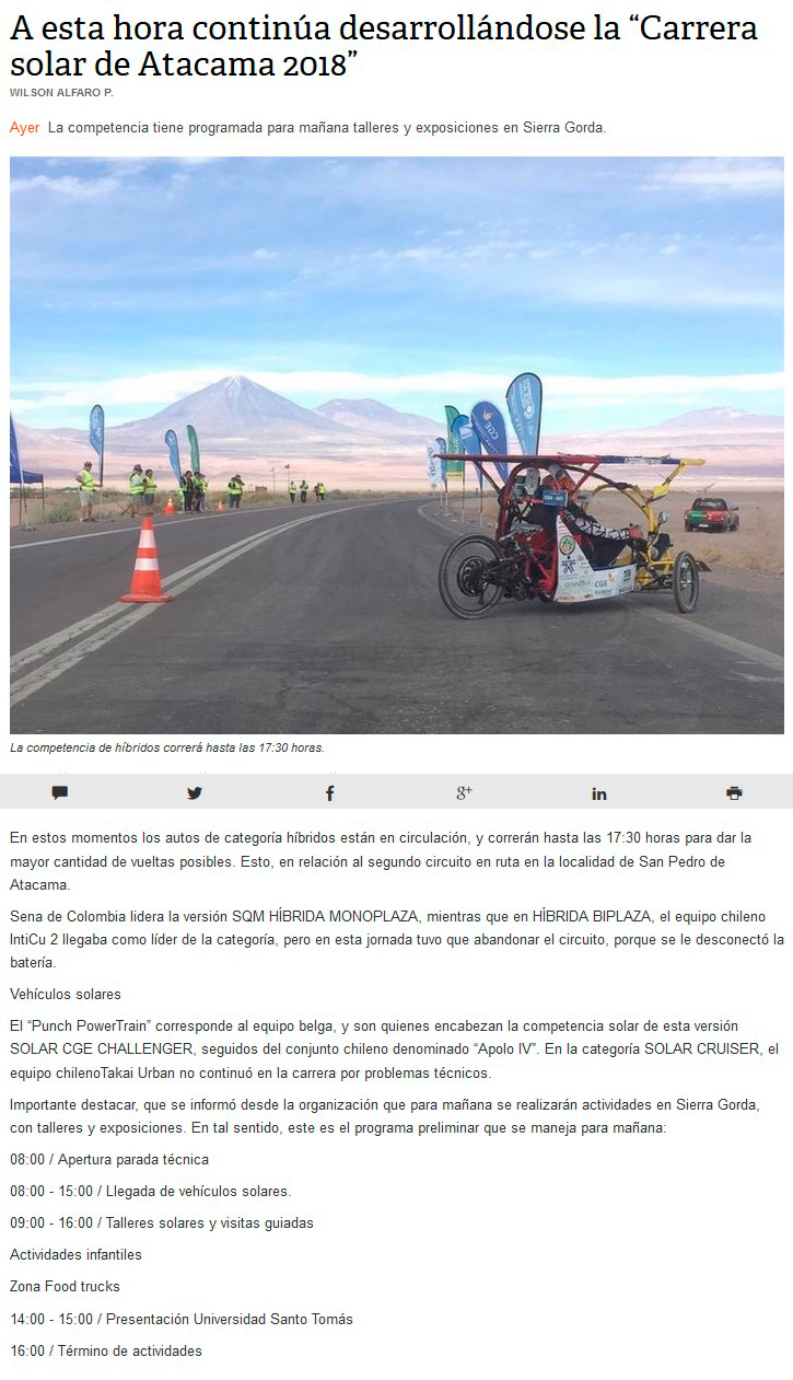 Punch Powertrain arrasa en la Carrera Solar Atacama - (El Mercurio de Calama)