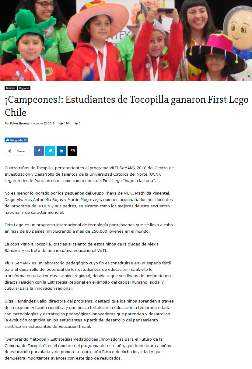 Estudiantes de Tocopilla ganaron "First Lego Chile" - (Estrella de Tocopilla)