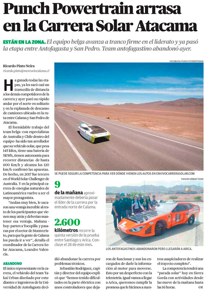 Carrera Solar Atacama 2018 tuvo un breve paso por Antofagasta - (El Mercurio de Antofagasta)