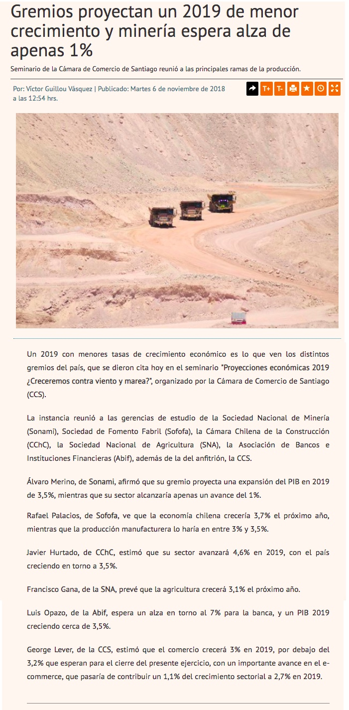Proyecciones sectoriales 2019: Banca espera mayor expansión y minería crecería solo 1% - (El Mercurio de Santiago)