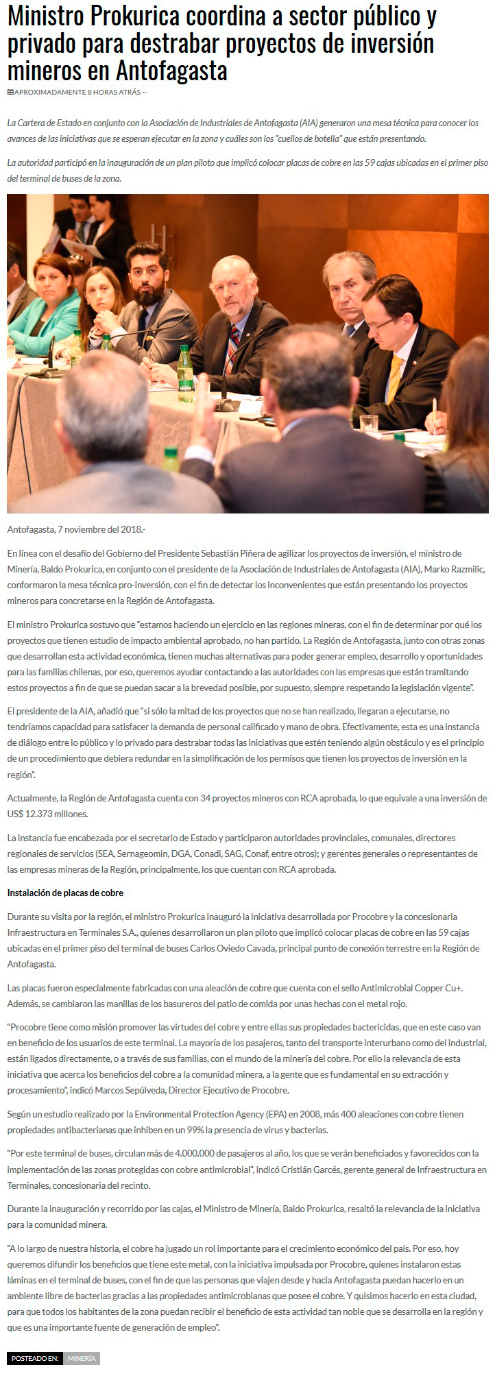 Ministro Prokurica coordina a sector público y privado para destrabar proyectos de inversión mineros en Antofagasta - (DF Online)