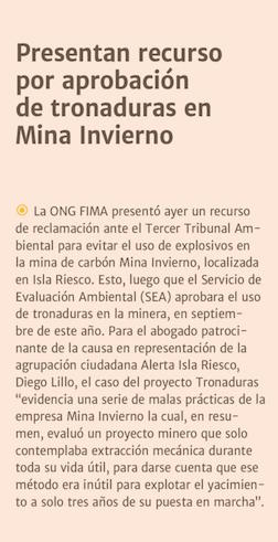 Alerta Isla Riesco presenta recurso para revertir aprobación de uso de explosivos en Mina Invierno - (El Mostrador)