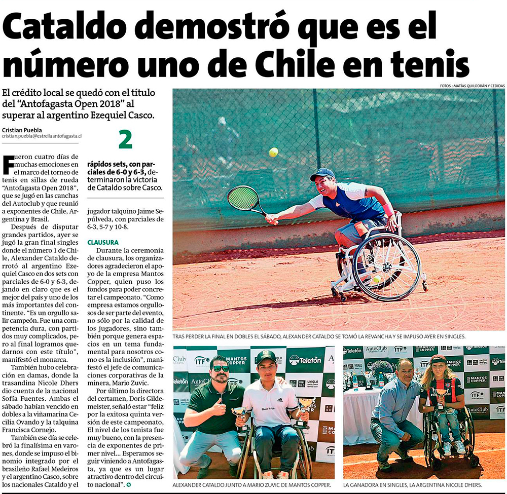 Cataldo vence sin problemas a Casco y logra título del Antofagasta Open 2018 - (El Mercurio de Antofagasta)