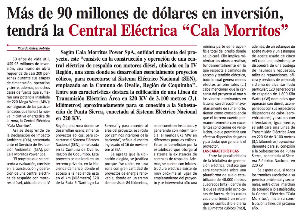 Central “Cala Morritos” de 90 millones de dólares estará ubicada en Ovalle - (La Región)