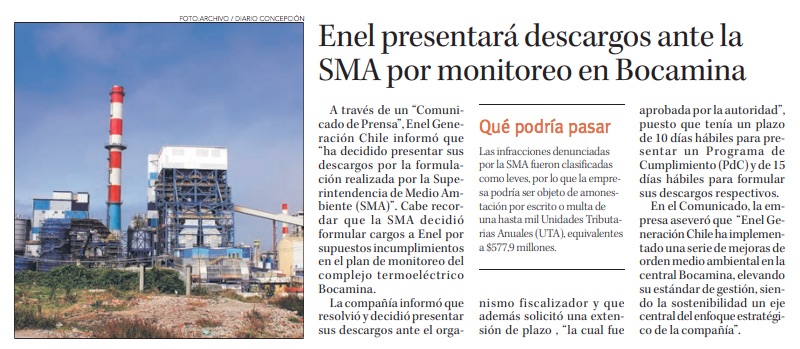SMA levanta cargos contra central Bocamina - (El Mercurio de Santiago)