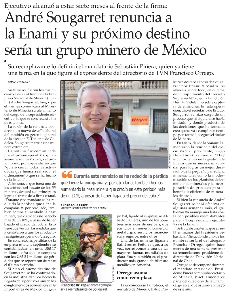 André Sougarret abandona Enami tras ocho meses y arriba a minera mexicana - (Pulso)