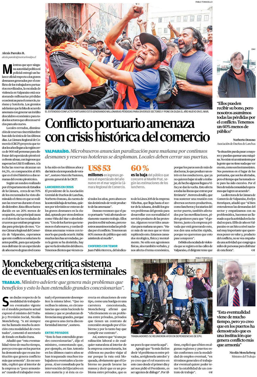 Estibadores de Valparaíso rechazan acuerdo logrado con Gobierno y buscan paro nacional - (El Mercurio de Santiago)