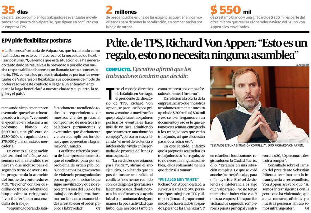 Portuarios rechazaron preacuerdo y Von Appen afirma que mantienen oferta de la semana pasada - (Pulso)