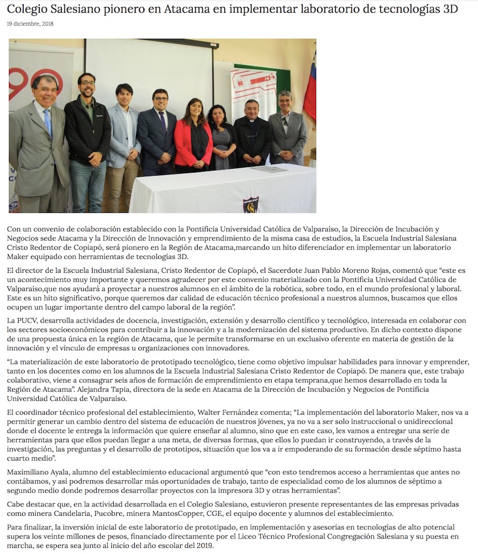 Colegio Salesiano pionero en Atacama en implementar laboratorio de tecnologías 3D - (tierramarillano.cl)