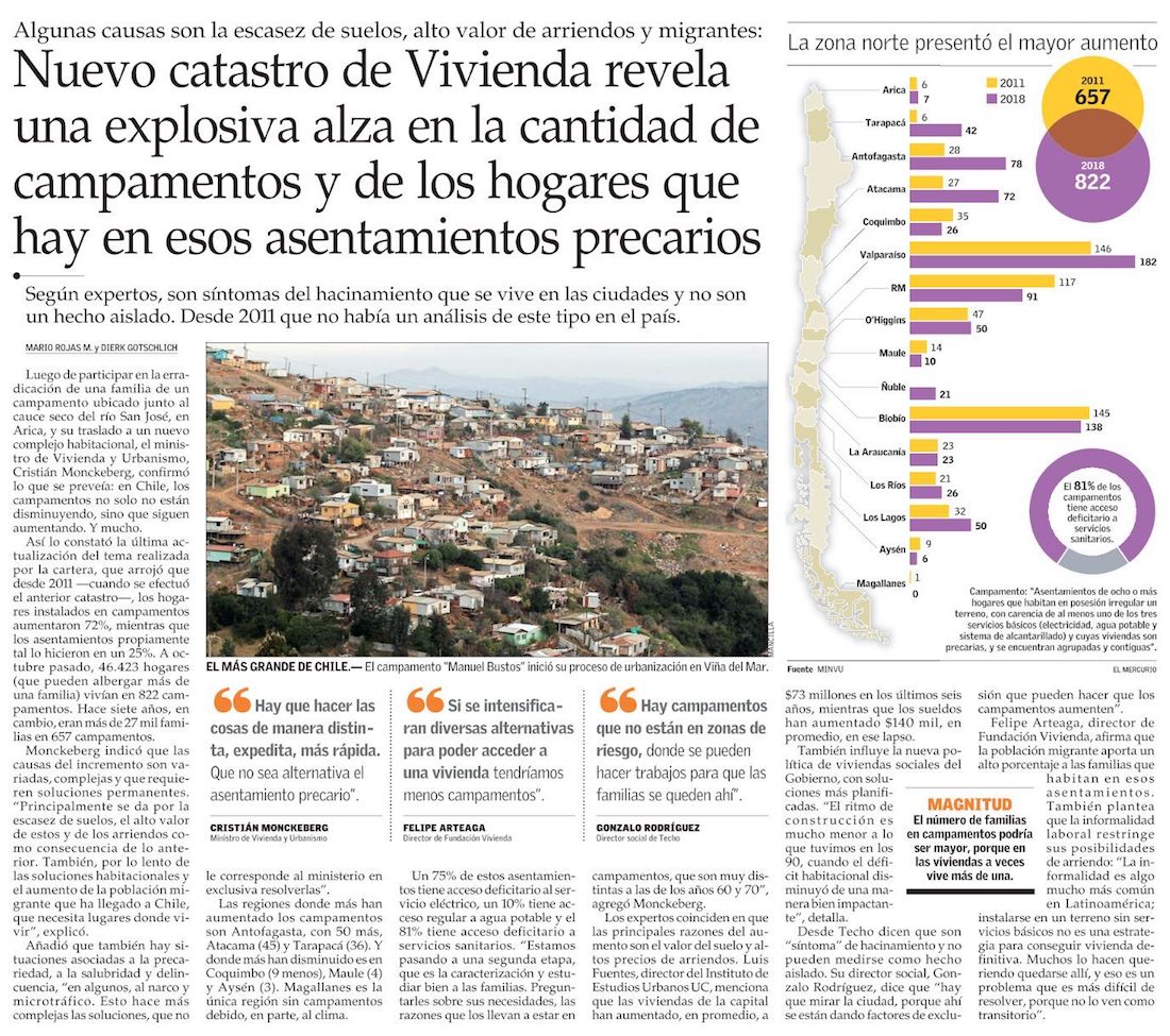 El norte lidera fuerte alza de campamentos en Chile en 7 años - (La Tercera)
