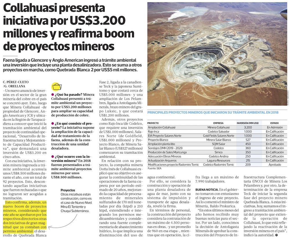 Minera Collahuasi sorprende con proyecto por US$3.200 millones - (Diario Financiero)