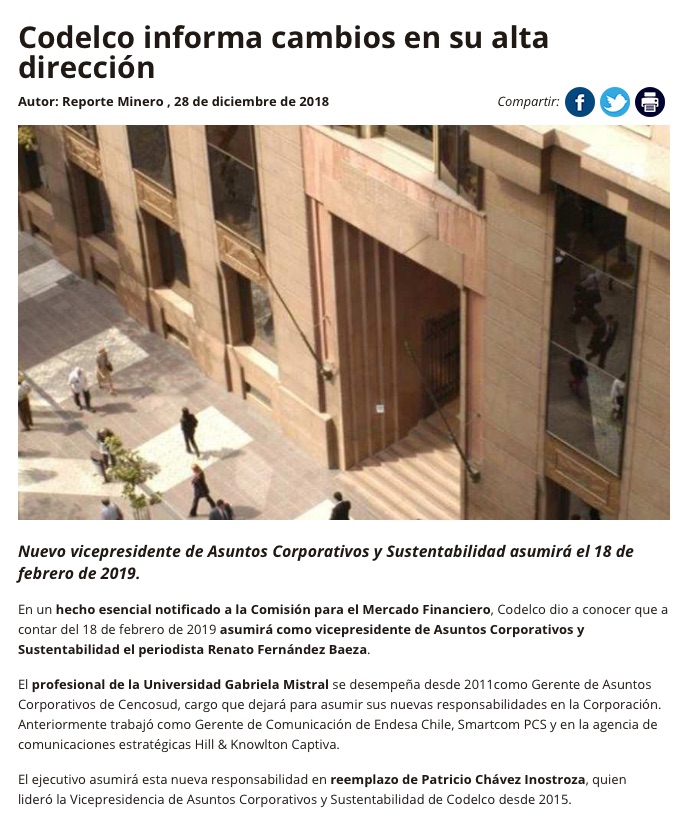 Renato Fernández asumirá en Codelco - (El Mercurio de Santiago)
