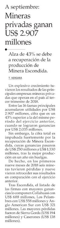 Mineras marcan lento despegue por aumento de ingresos y las utilidades suben 48% - (Diario Financiero)